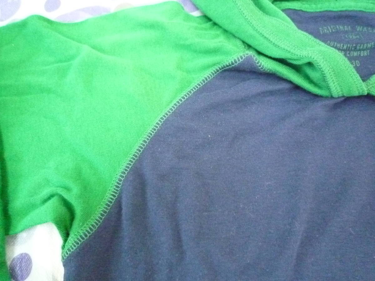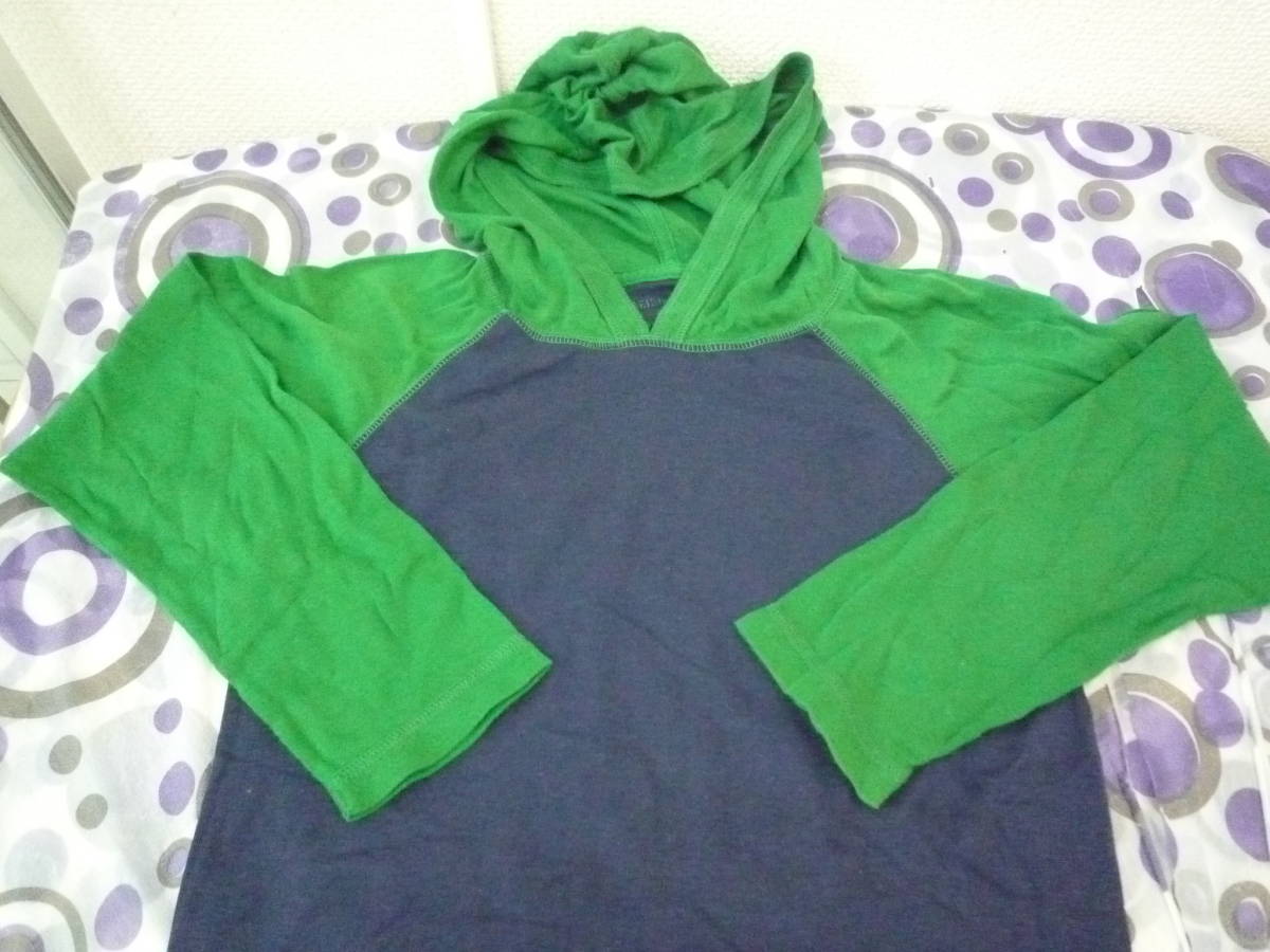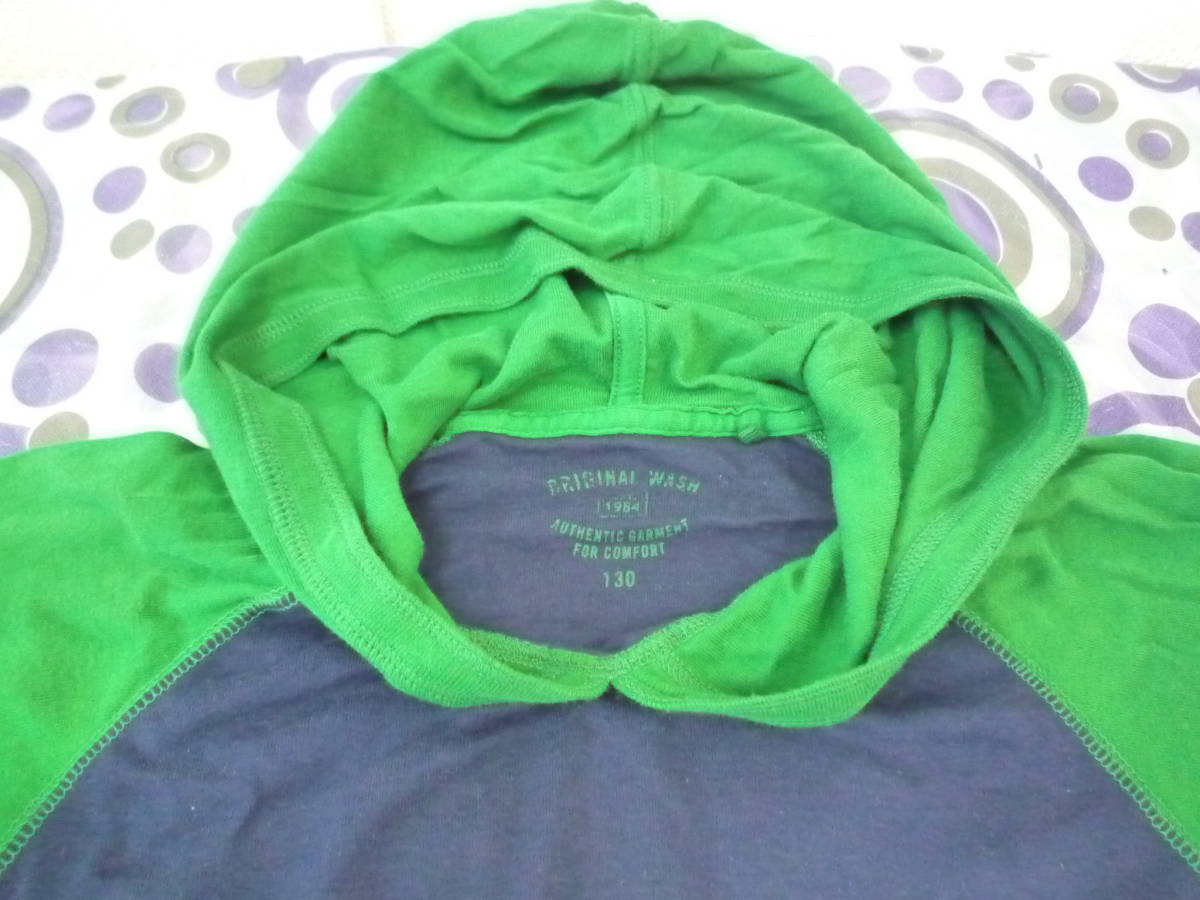 ★ユニクロ 男の子 薄手パーカー ラグラン プルオーバー ネイビー×グリーン(130)
