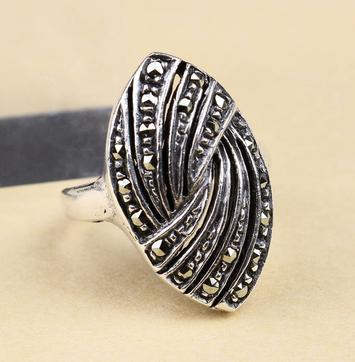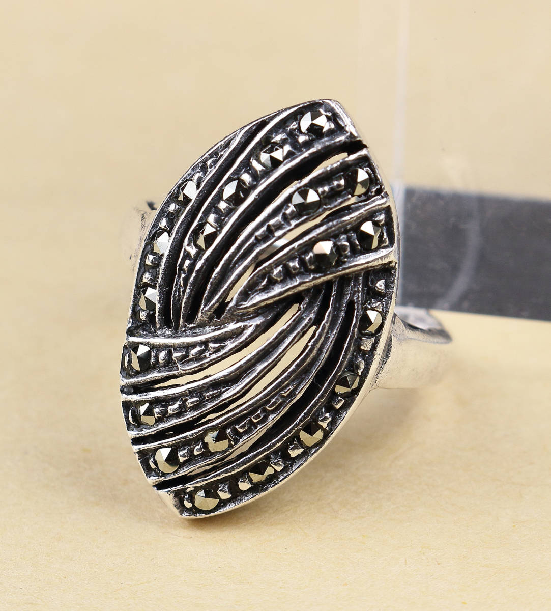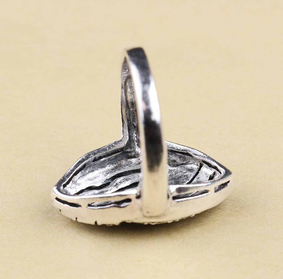 【寸法】 11号 最大縦幅2.3cm 総重量5.6g 【状態】 多少の小傷があります クリーニングしましたのできれいです 【材質】 マーカサイト 銀製だと思いますが刻印が見当たりませんので他の素材かもしれません 【配送】 おてがる配送ゆうパケット(補償なし) / おてがる配送ゆうパック(補償あり) 【免責】 ご連絡や発送にお日にちを頂戴する場合があることをご了承ください |
