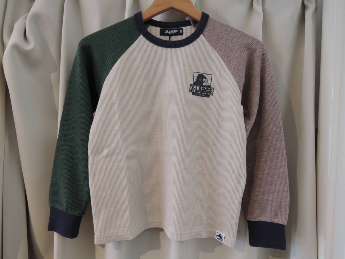 X-LARGE エクストララージ XLARGE Kids ソデ配色ワッフル L/S Tシャツ ベージュ 130 最新人気商品 送料込  値下げしました!
