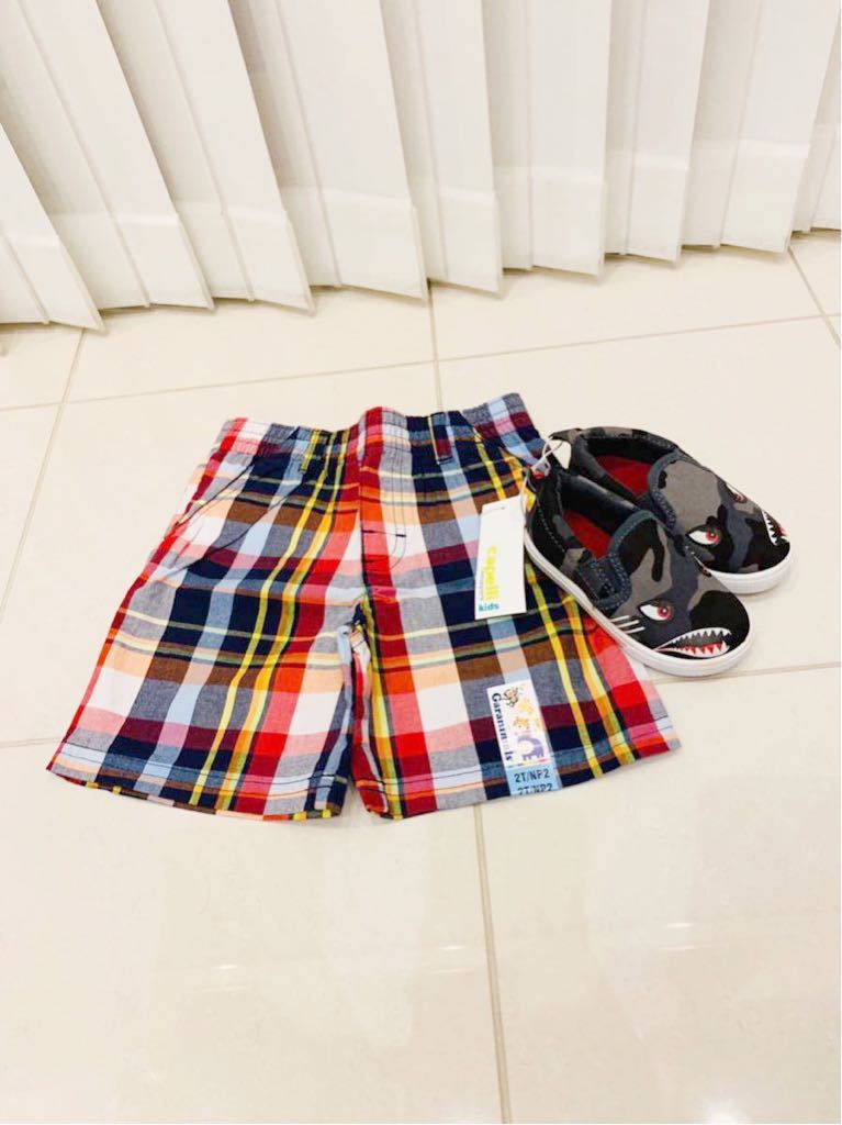 【新品タグ付き】ハワイ購入 キッズ パンツ 92-100cm シューズ12cmくらき セット販売 capelli ショートパンツ ボーイズ 男の子