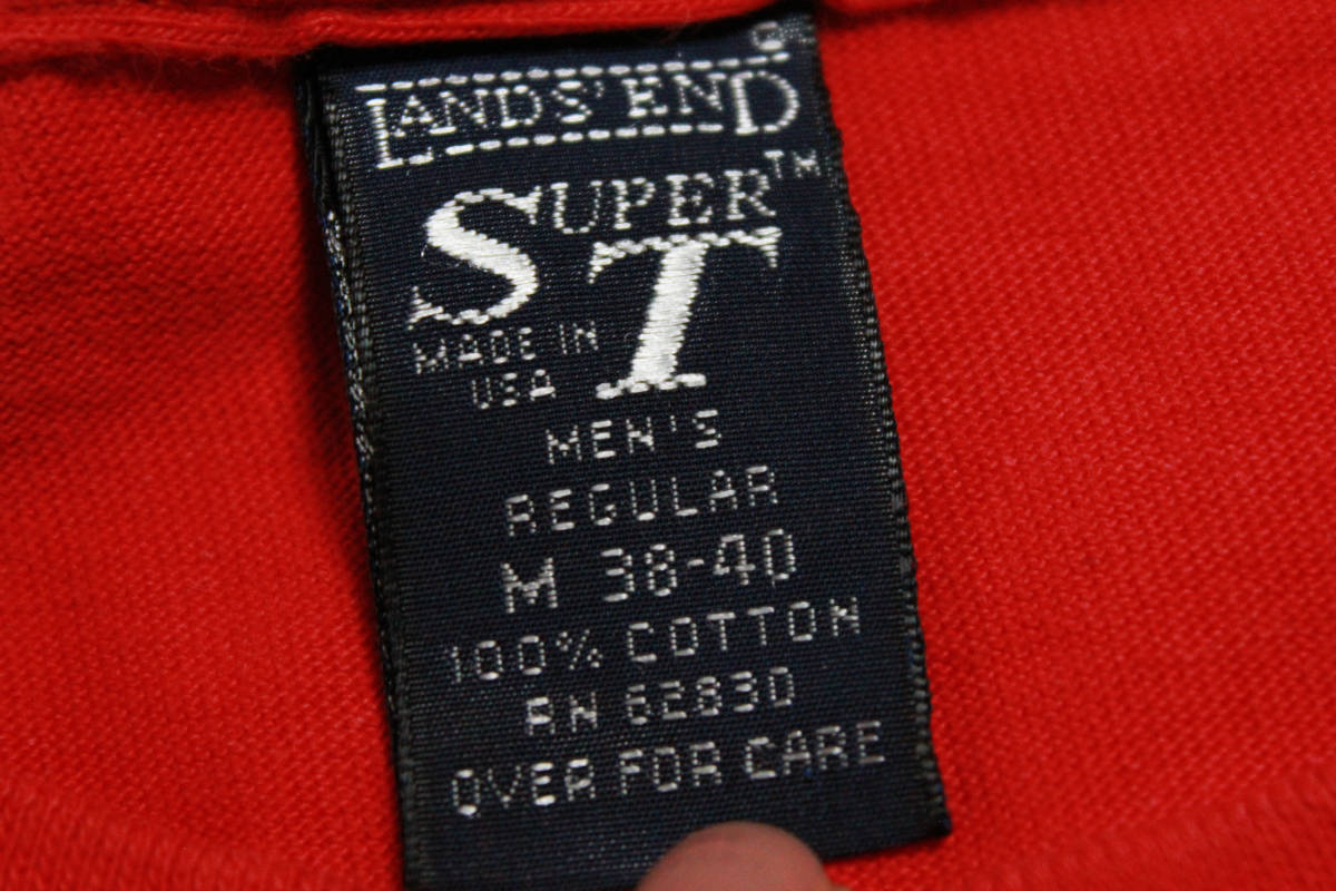 デッドストック? USA製 90's ランズエンド LAND'END クルーネック長袖 ポケットTシャツ(M) ロンT ポケT 赤 90年代 アメリカ製