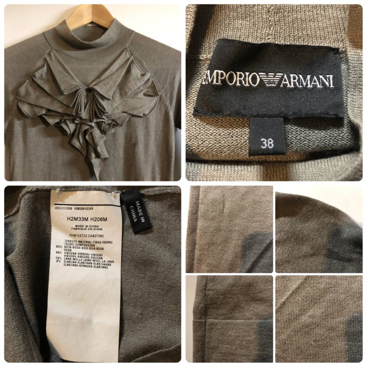 エンポリオアルマーニ 黒タグシルクハイネックニット38/セーター/ギャザー