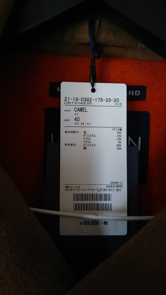 BEAMSで購入しました。ダッフルコートです。