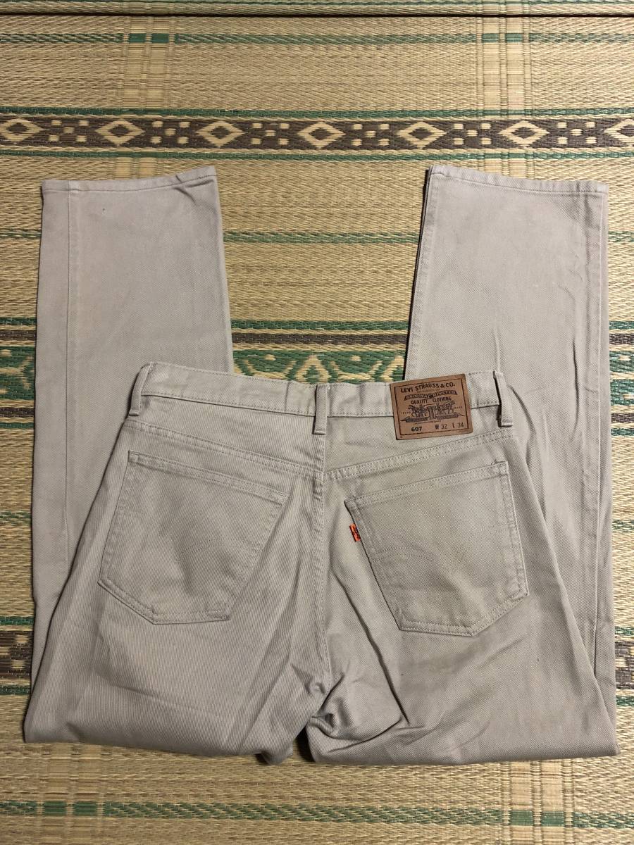 本商品右膝付近に少しシミ?ありますが古着、明るい色合い的に許容範囲だと思います、神経質な方はご遠慮ください、平置きウエスト約41.股下約76.5です、