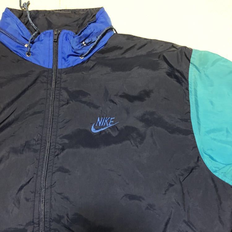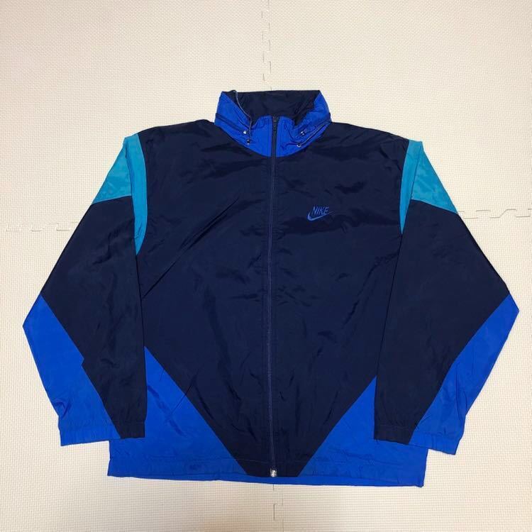 Nike ナイキ 80's 90's 銀タグ ナイロンジャケット ジャンパー L ネイビー 青