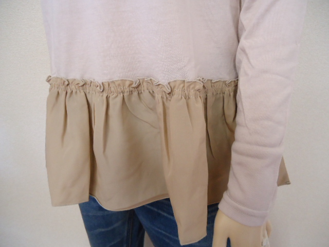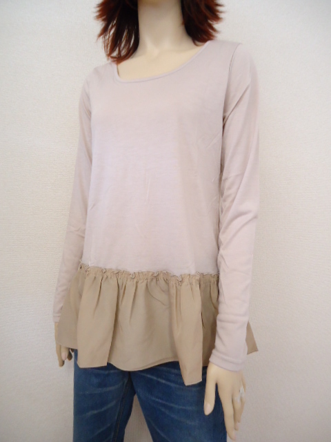 【KCM】ct6-7360100602-03■新品■【ANOTHER BRANCH/アナザーブランチ】裾フリルロンT/チュニック ベージュ系 サイズF