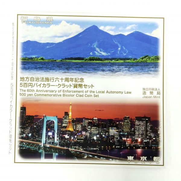 送料無料 地方自治法施行六十周年記念 5百円バイカラー・クラッド貨幣セット 平成28年 福島県/東京都