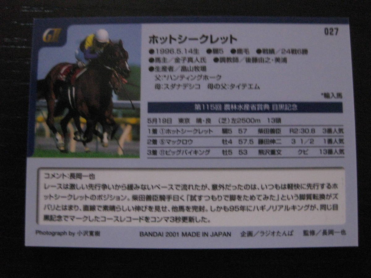 ★競馬★ホットシークレット サラブレッドカード2001 027 バンダイ