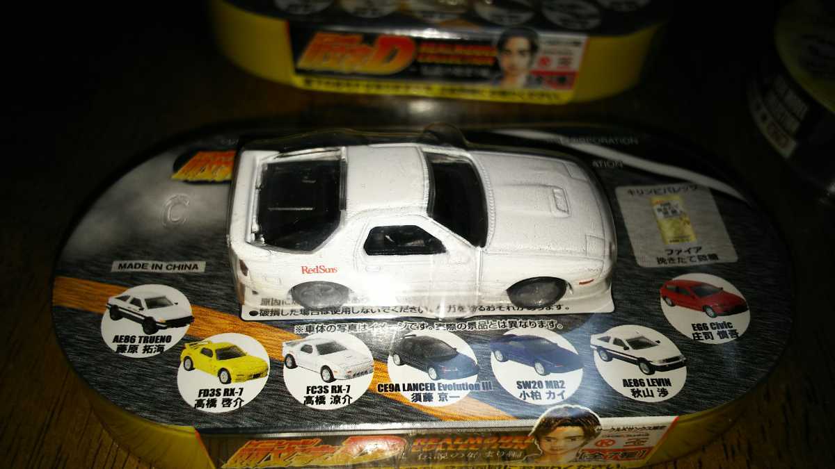 ミニカーの種類、TOYOTAトレノ 86、マツダRX-7、三菱ランエボ。