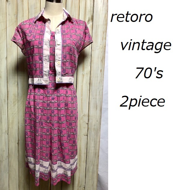 昭和レトロ 70's 2ピース ワンピース ヴィンテージ レトロモダン 国産レトロ  ★36