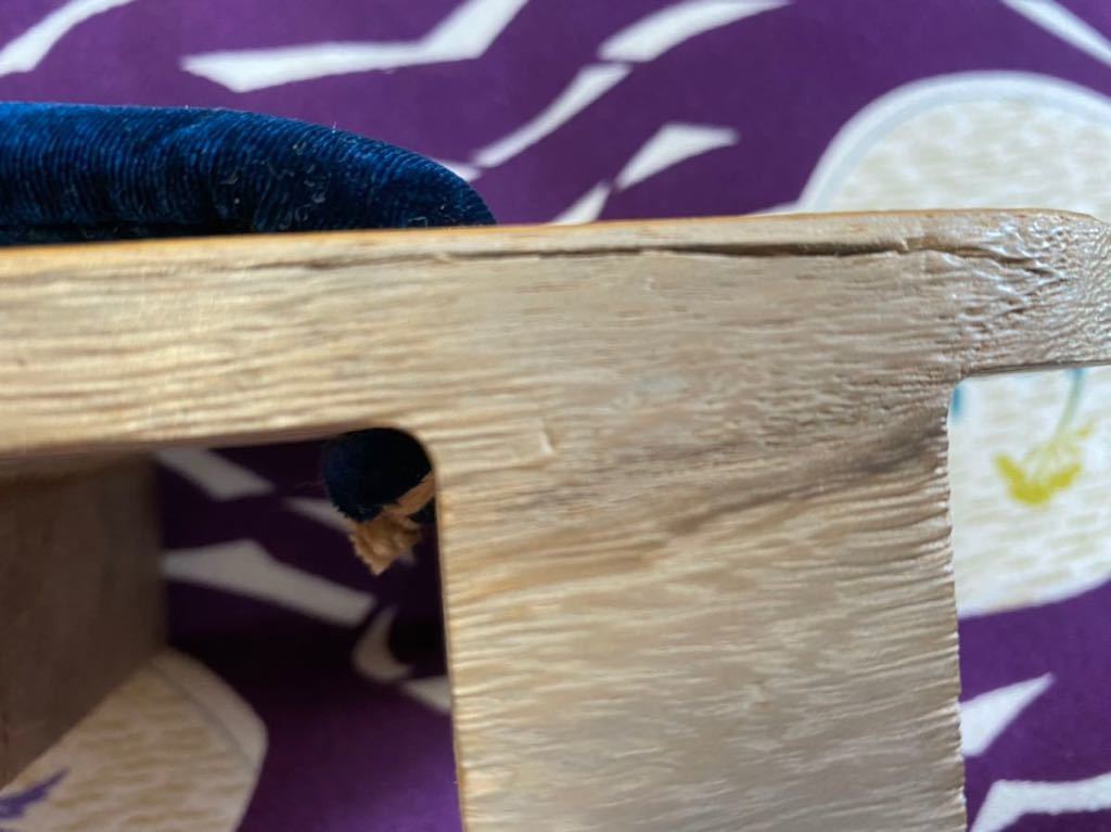 貴重な胡麻竹を台表に貼り付けた桐下駄です。大きさは長さ約23.5センチ、幅約12.5センチ、高さ約5.3センチ。鼻緒は紺色別珍。自宅での保管品で未使用ですが、数ヶ所に当たりキズがあり、片方の側面に7枚目の写真のような瑕疵がみうけられます。箱はありません。