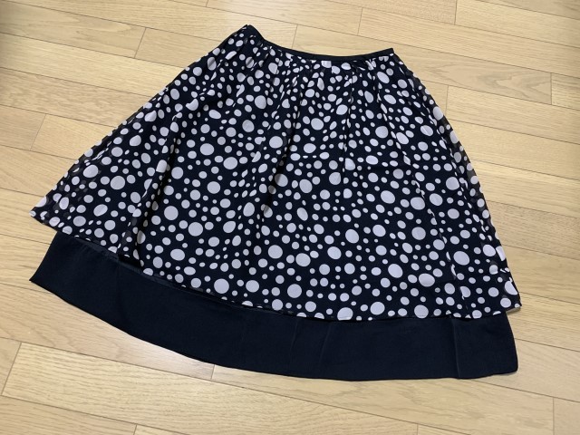 ・大きさの違う〇柄の生地がふわっと重ねられた素敵スカートです。