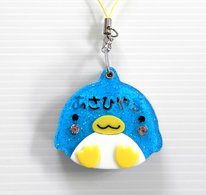ブルーの部分にはラメが入っていて、ほっぺのピンクはラインストーンです。