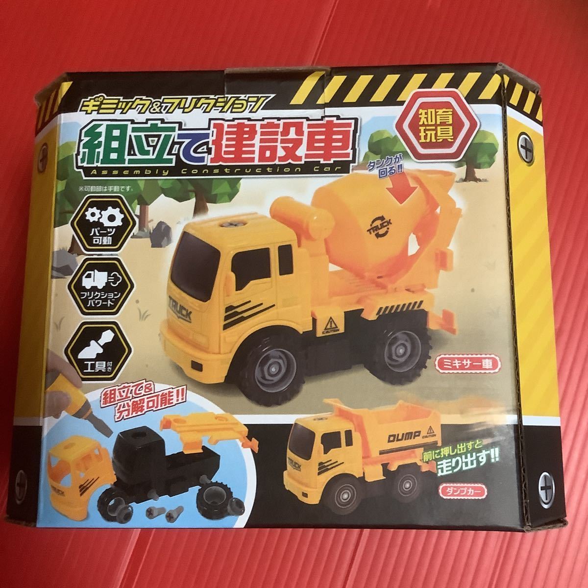 組立て建設車(ミキサー車) 組立て&分解可能・前に押し出すと走り出す・タンクが回る 工具付き
