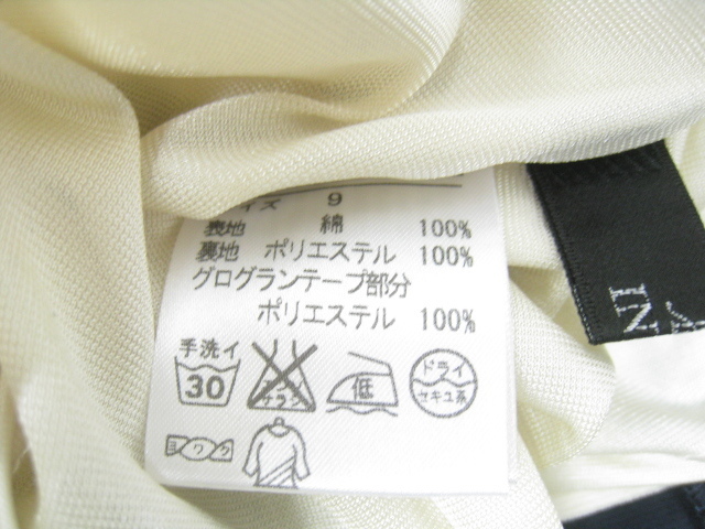 INED イネド コットン ボーダー柄 スカート ナチュラルホワイト×濃紺 SIZE 9