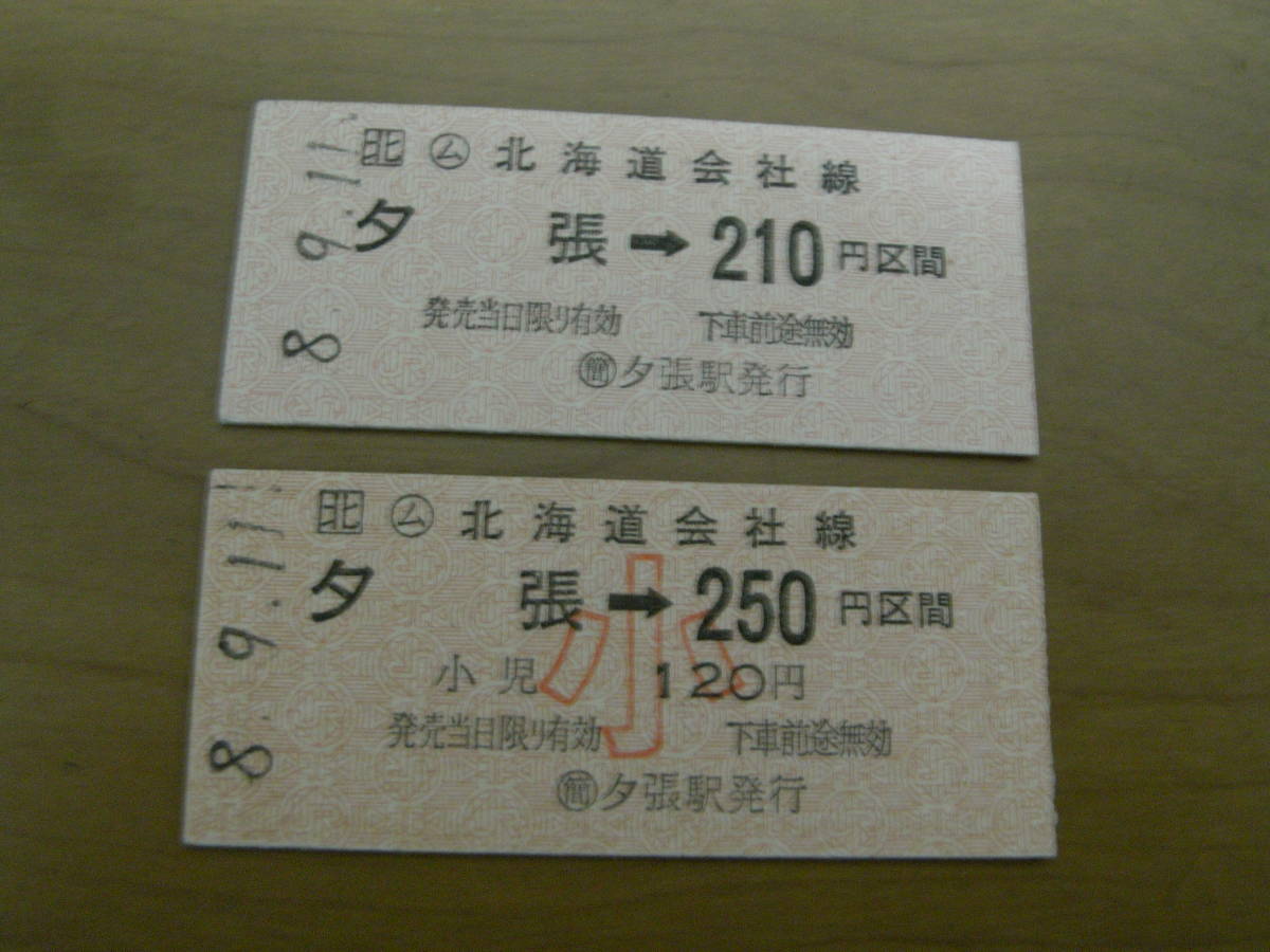 2枚/石勝線 ム夕張→北海道会社線210円区間・ム夕張→北海道会社線 小120円区間 平成8年9月11日 簡 夕張駅発行 大小2枚