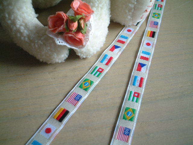 | ご覧頂きありがとうございます。 新品1巻22.5m★いろいろな種類の世界国旗が沢山刺繍された可愛らしいデザインです。 チロルリボンの巾は12mmになります。 写真にはありませんが一巻きです。 お取り置きも承りますので、落札後に1度必ずご連絡くださいませ。 オンラインショップとの同梱も可能です。 | ||