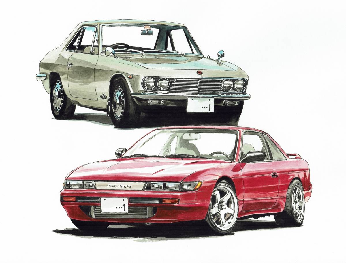 NC-015 日産シルビア・NC-016 トヨタクラウン 限定版画300部 直筆サイン有 額装済●作家 平右ヱ門 希望ナンバーをお選びください。