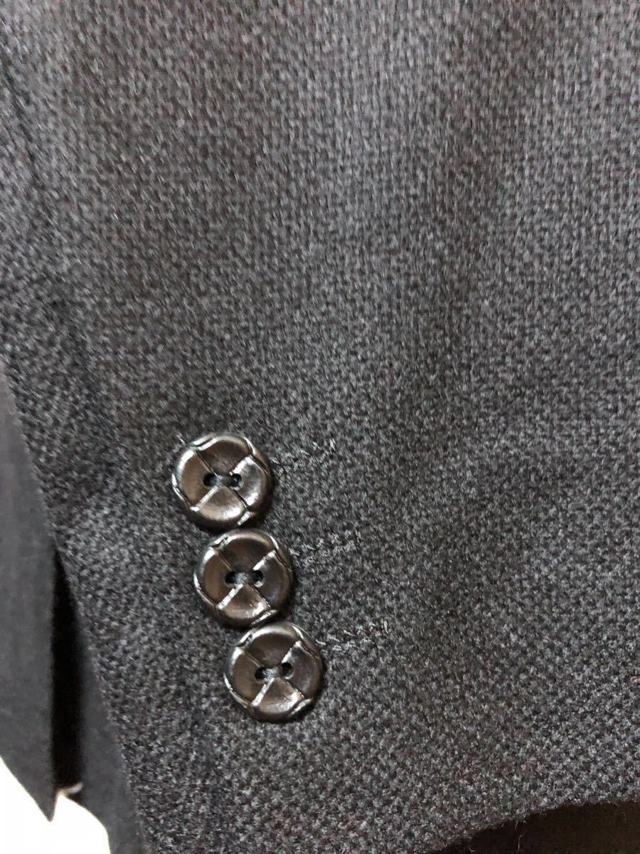 ・サイズ⇒A8(86) ・各寸法⇒着丈77cm、肩幅47.6cm、袖丈64cm、チェスト100cm ※素人採寸となります、多少の誤差はお許し下さい。 ・表地⇒毛100% ・裏地(背抜き)⇒胴/キュプラ 袖/キュプラ ・色⇒黒、織柄あり ・ベント⇒サイドベンツ ・袖ボタン⇒3個 ・台場⇒切台場 ・商品状態⇒新品(秋冬物) R1-305099XA | ||