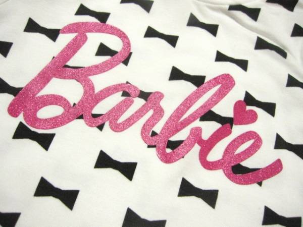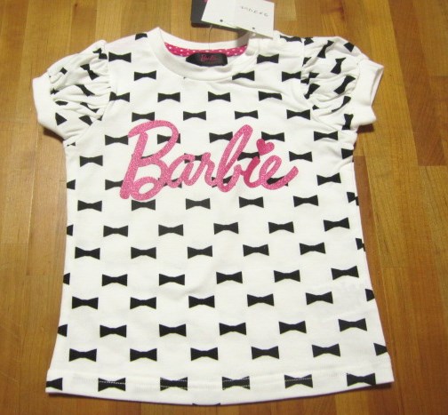 *送料無料*新品*100*Barbie*半袖Tシャツ*ブラックリボン*バービー*パフスリーブ*