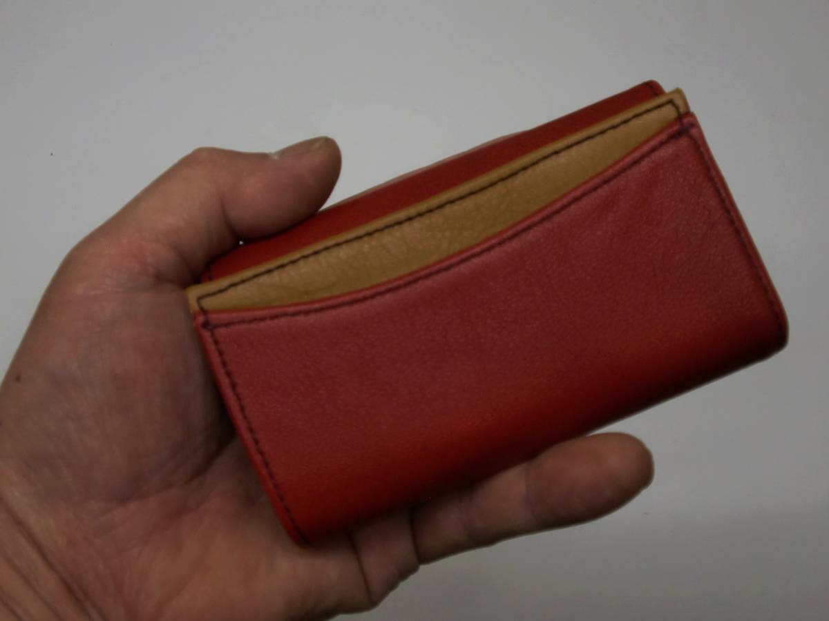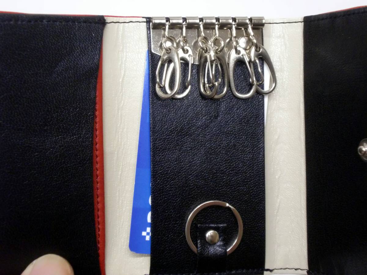 上品でお洒落なアクセント配色。内側にポケット3つ、キーフックの後ろにもカードなど収納できます。