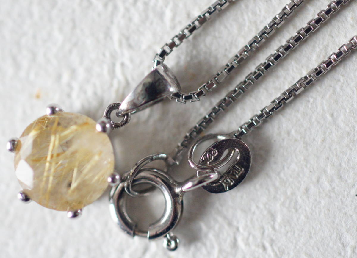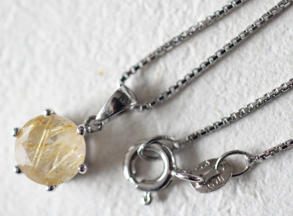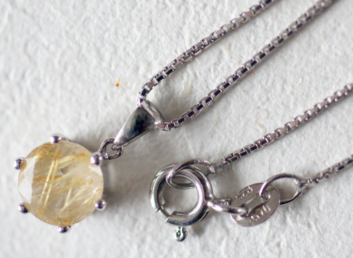 シルバー925製チェーン付き ルチルクォーツ ペンダント 金針ルチル水晶 ネックレス
