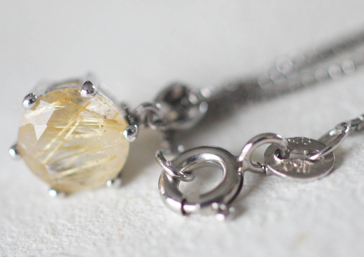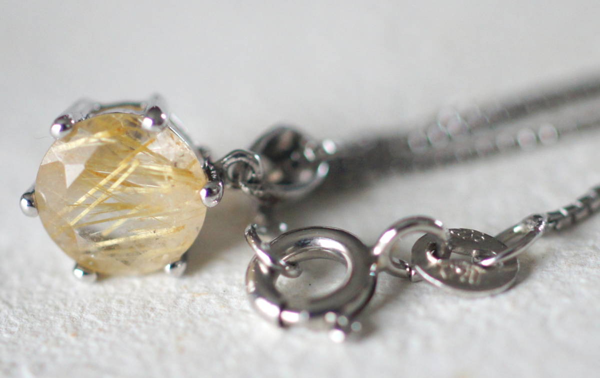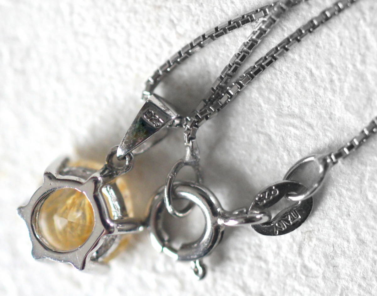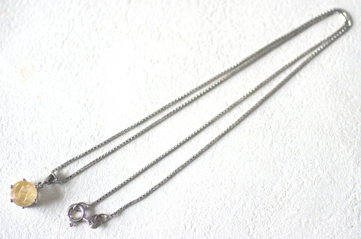 シルバー925製チェーン付き ルチルクォーツ ペンダント 金針ルチル水晶 ネックレス