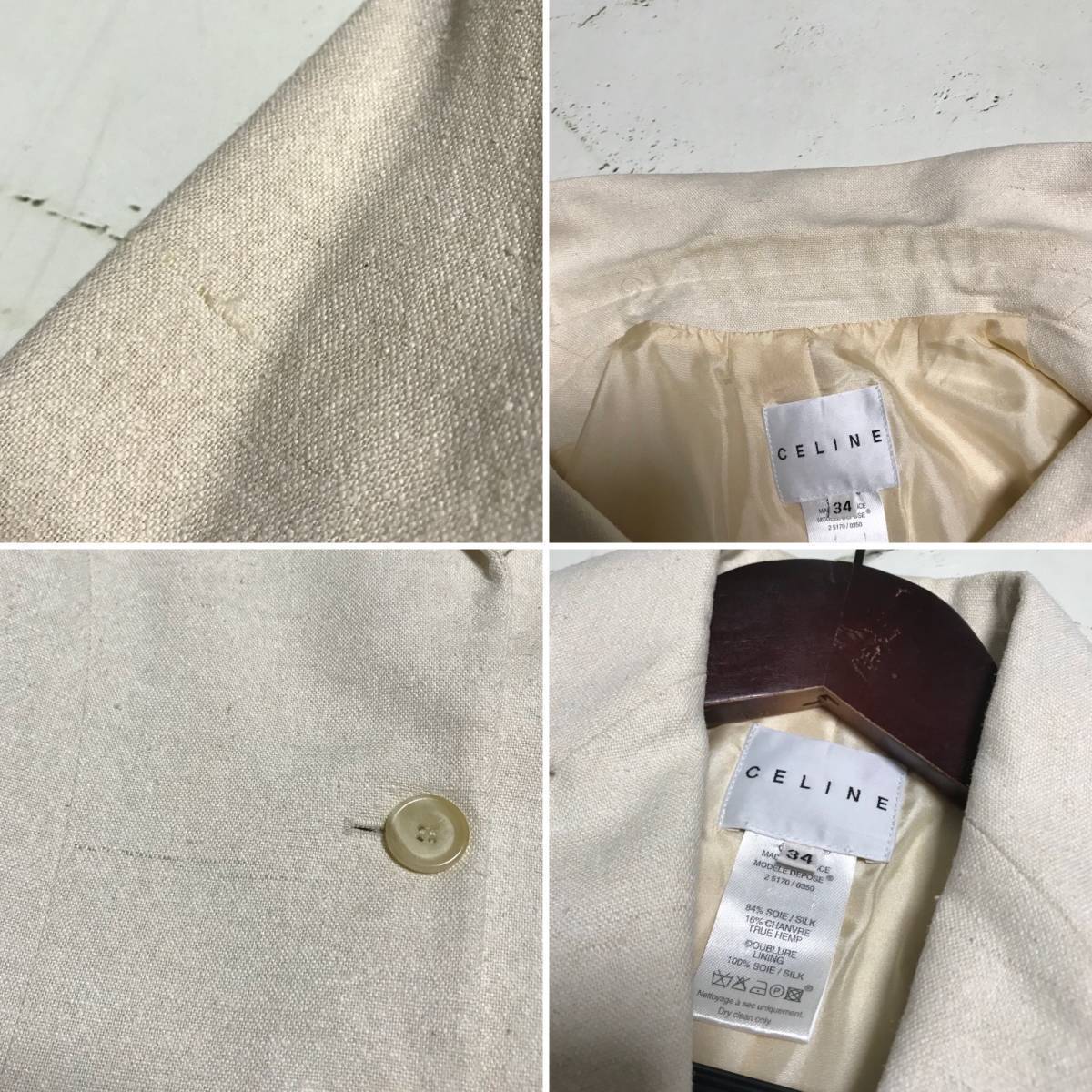 希少★フランス製 仏 セリーヌ CELINE★上質 レディース シルク リネン パンツ スーツ セットアップ 上下 size 34