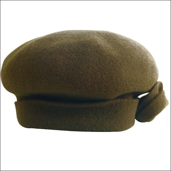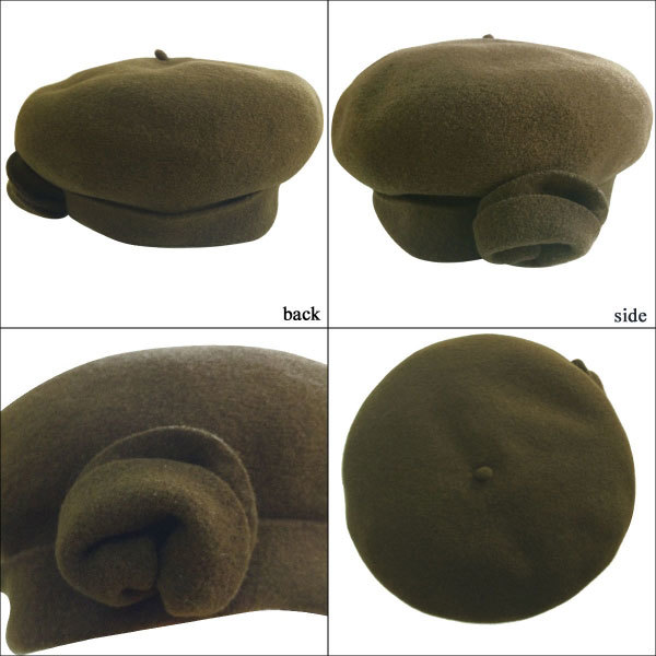 +++ Ladies レディース ウール コサージュ付き ベレー帽 made in フランス カーキ c-65+++ |