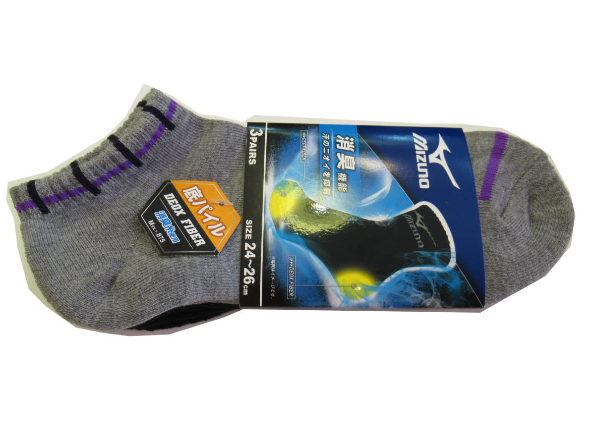 ミズノスポーツ MIZUNO メンズ靴下 3足組スポーツ 消臭機能 ショートソックス サービス品(24~26㎝)3色 3足セット(5番)★★