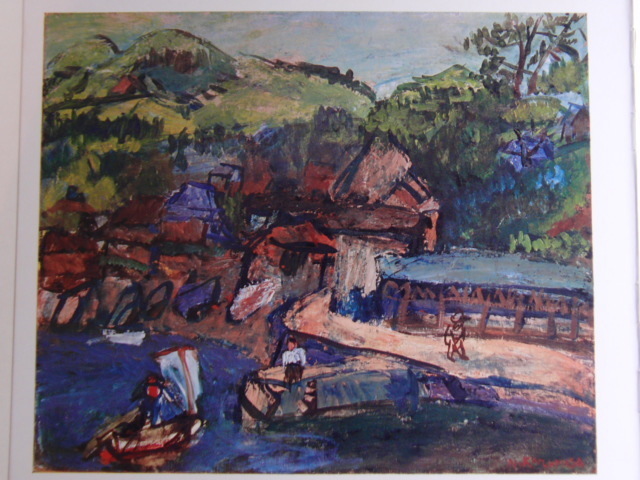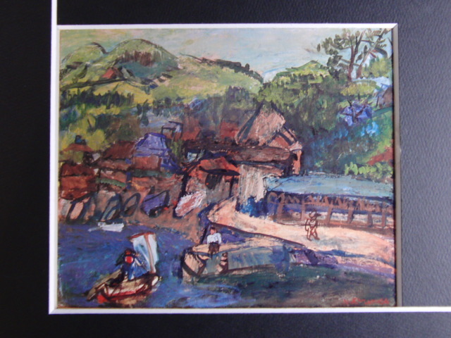 中川一政、【福浦・船着場】、希少な画集画、新品高級額 額装付、状態良好、送料無料、絵画 風景画 送料無料、yoshi