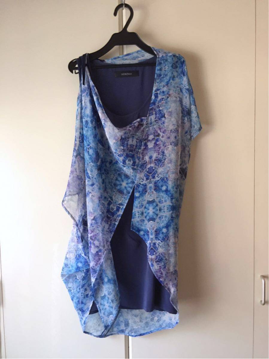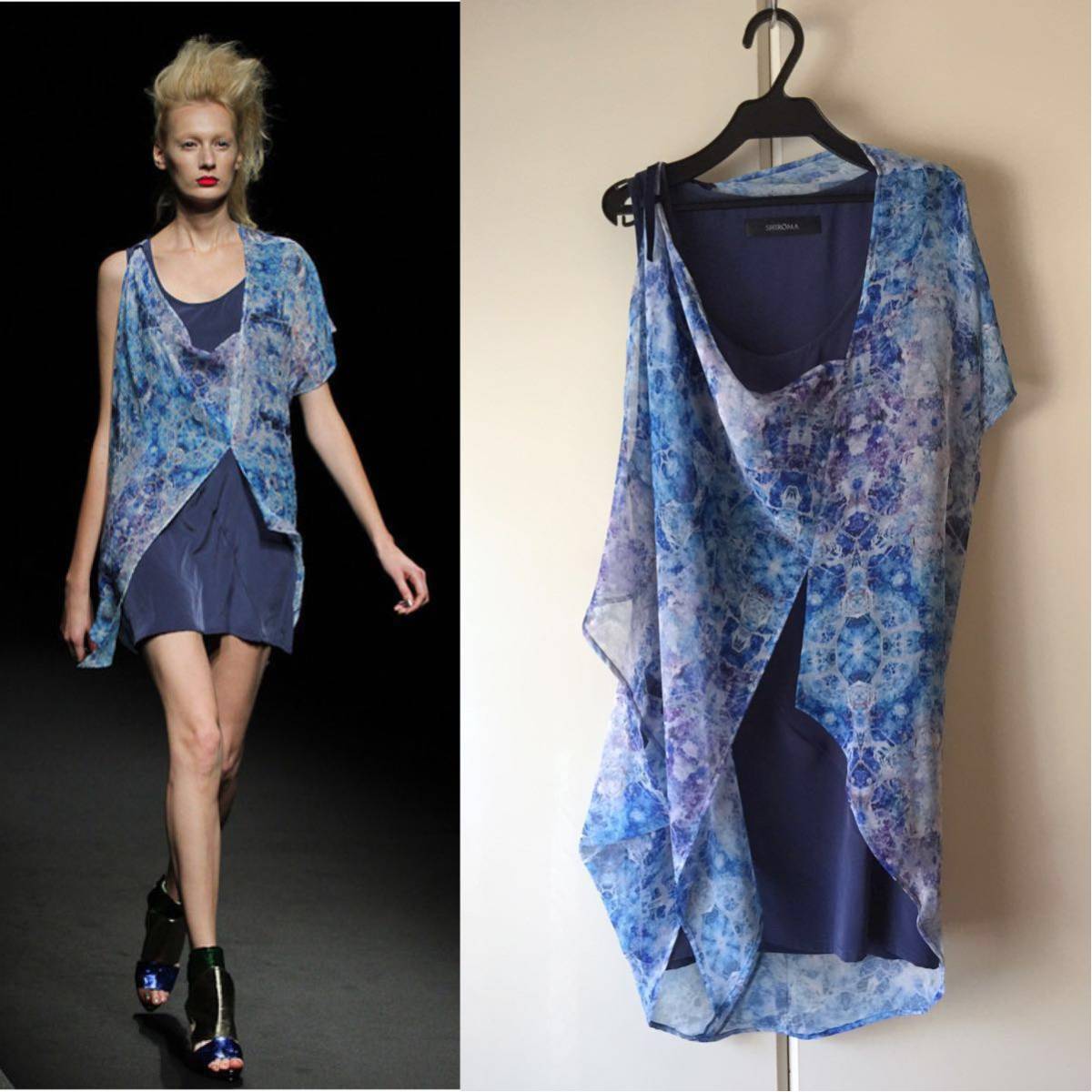 イナズマをイメージした、グラフィックを箔加工したテンセルのドレスやブラウス、