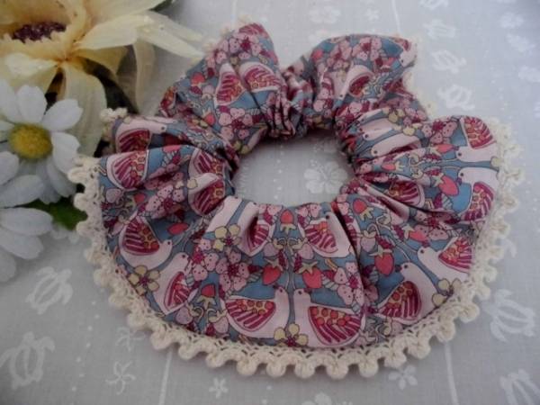 ★シュシュ★リバティ★ストロベリー・フィースト★ピンク系★鳥★