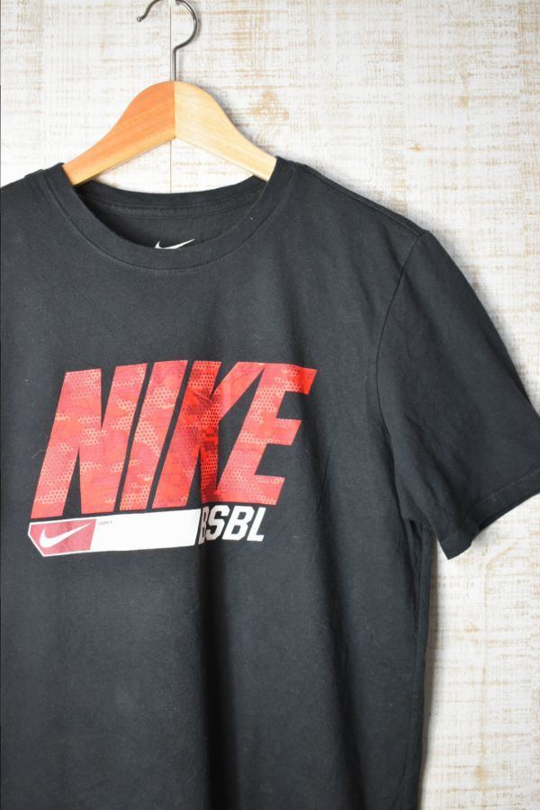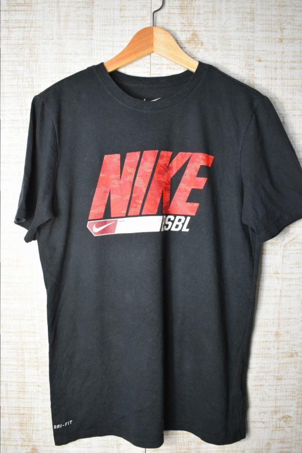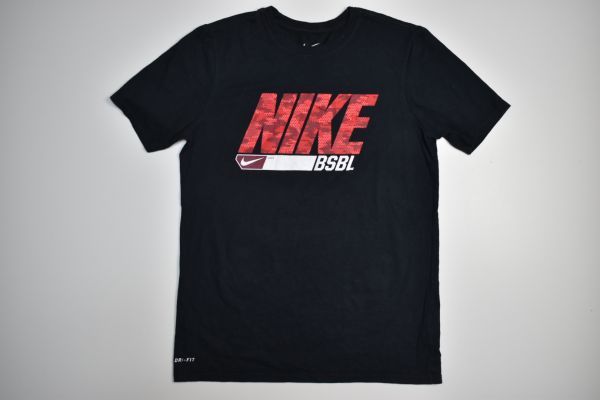 ●US USED NIKE ナイキ Tシャツ DRI-FIT プリント スポーツ ブラック黒【M】