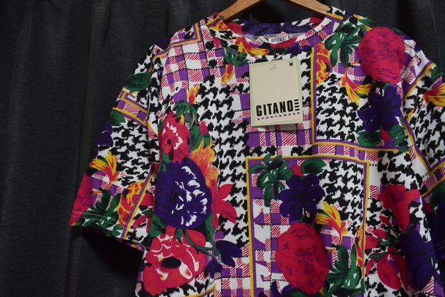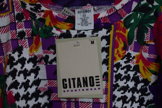 グッドカラー◎デッドストック品◎90sビンテージGITANO総柄プリントTシャツサイズLミックスカラーです。素材は100コットン。