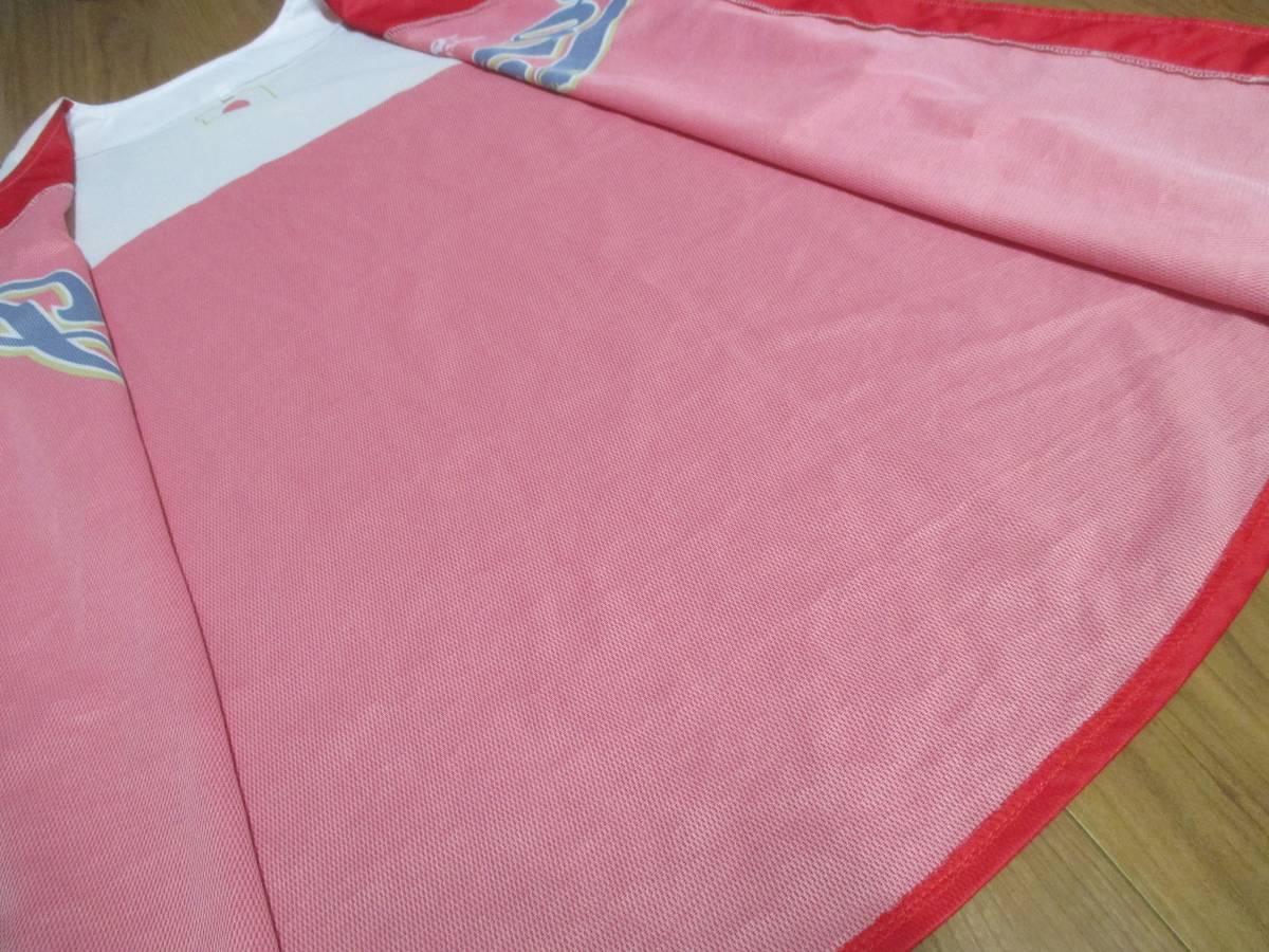| 商品説明 | ●自己紹介欄ご覧ください。 ●サイズ:L ●実寸(素人採寸になりますので、多少の誤差はご了承下さい):着丈(襟元~裾):約73cm、身幅(脇下):約55cm、裄丈(背面襟元中央から袖先まで):約41cm ●カラー:レッド×ホワイト ●素材:ポリエステル ●正規品 ●中古品です。着用に伴う若干の使用感(微傷)がございますが、ご使用に問題となる大きなダメージはございません。その他状態等は画像でご確認ください。 ●自己紹介、注意事項をご覧の上、納得し、画像、商品説明で商品を理解できる方のみご検討ください。中古、年代物古着に理解のない方の入札はお断りします。 ●0120 | |