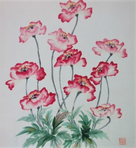 了正泰賢(リョウショウタイケン)の手描き友禅画【アネモネ】の出品です。