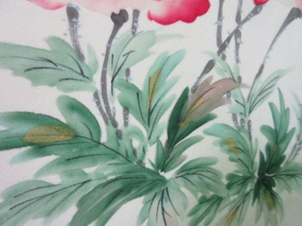 着物友禅をモチーフに、絹の絶妙な光沢の魅力をキャンパスとして花の優雅さを一筆一筆描かれた友禅画です。
