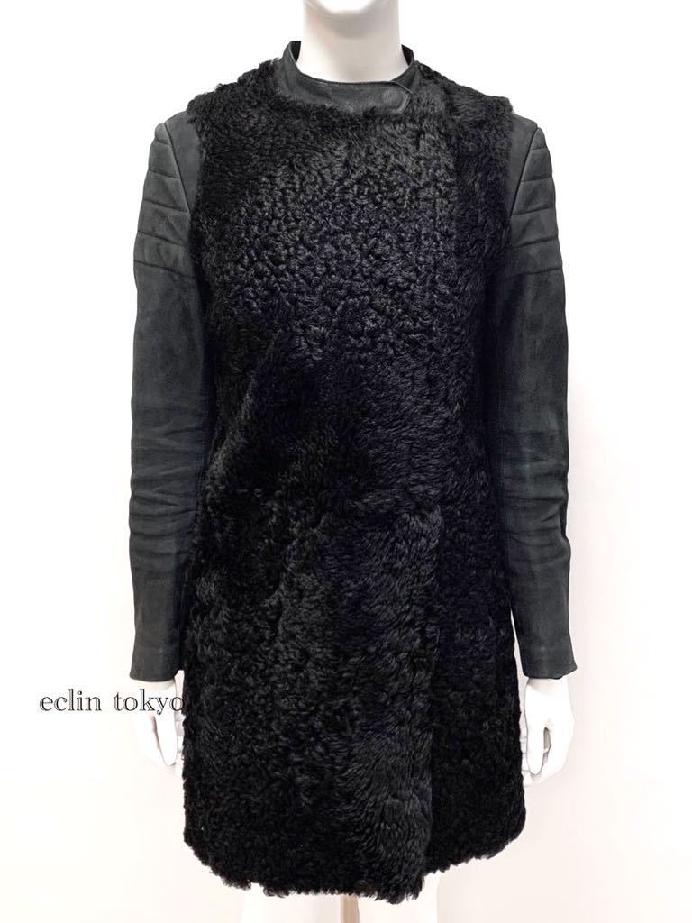 逸品!ファー&レザー ライダース コート 黒 38