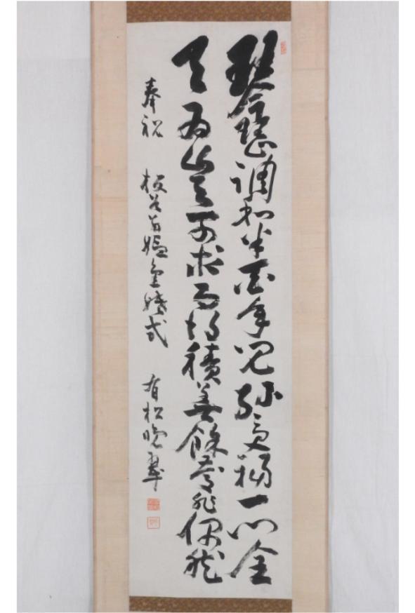 【真作】《掛軸》有松晩翠 二行書 南画家 豊前 福岡