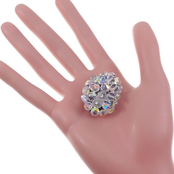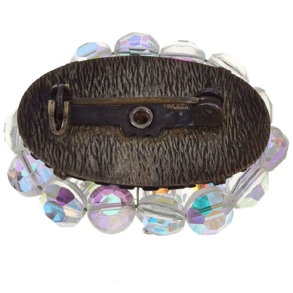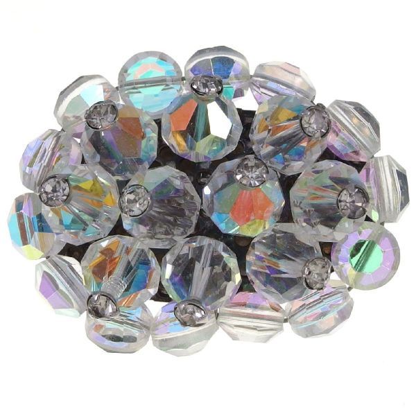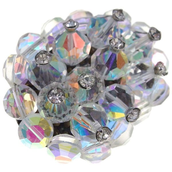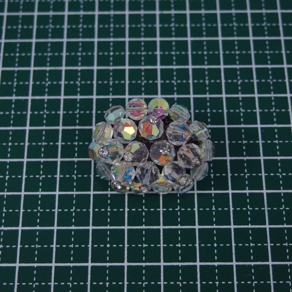 A3065◆ 先っぽにラインストーンが飾られたオーロラビーズのクラスター型ヴィンテージブローチ ◆
