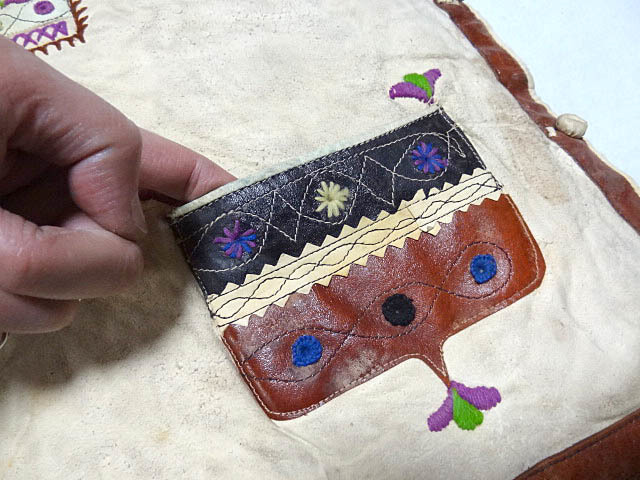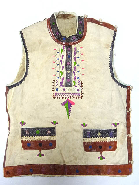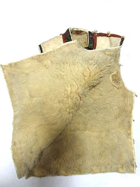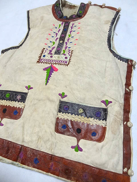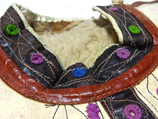 ビンテージ 希少 珍品 10S 20S 30S 民族 エスニック レザー 刺繍 アート ワーク 装飾 ムートン シープスキン ベスト 毛皮 レア ネイティブ