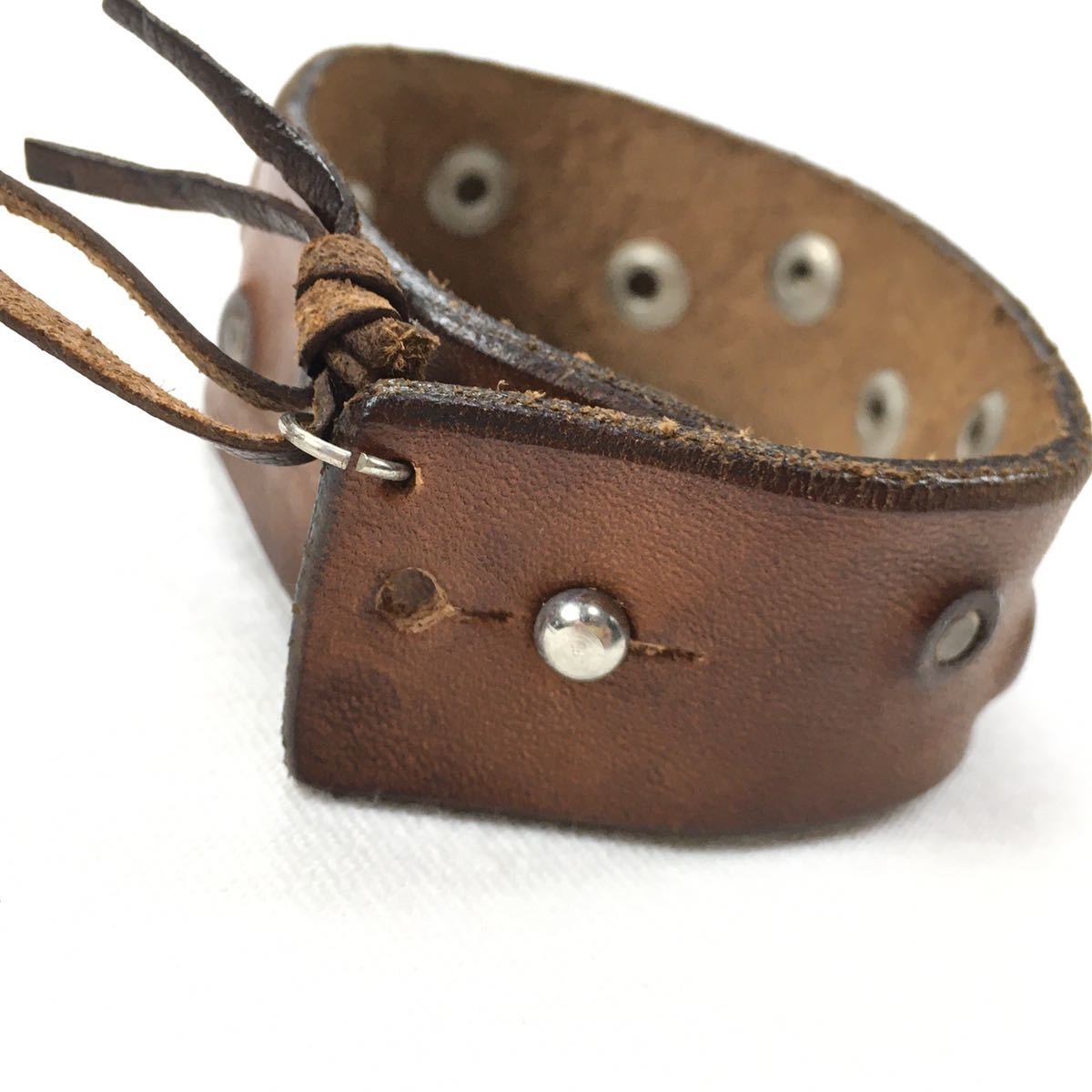 新品 2.5万 イタリア製【RICCARDO FORCONI】極上ムラ仕上げ◎ 大人の男性の腕元に!小ぶりスタッズ 本革 レザーブレスレット