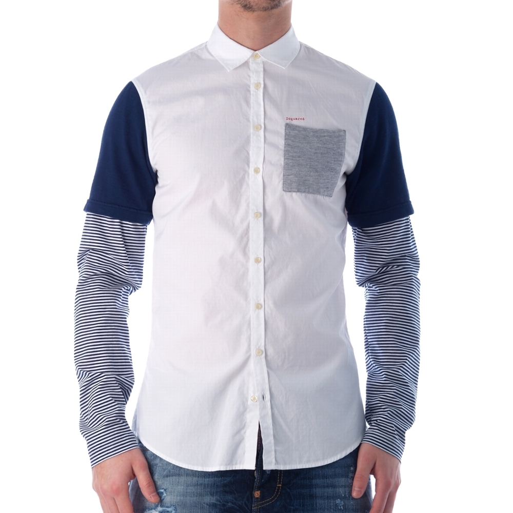 2013年・春夏、ディースクエアードのシャツです。 着用回数は、3回で、襟汚れ等は、ありませんが、 前面・左・裾に、引っ掛けがあります。(4枚目画像参照) サイズは、希少な、メンズ最小サイズの、【42】 (注: レディースの大きいサイズではありません) 白いポプリン素材のシャツに、Tシャツ素材のブルーの袖、 紺白の、ボーダーの長袖Tシャツが、ドッキングした、トロンプルイユ・シャツです。 グレーの胸ポケットも、Tシャツ素材で、 赤い文字で【Dsquared】と、プリントされています。 厚みのある白蝶貝のボタンは、黄色い糸で縫われています。 全て【 DSQUARED2 MADE IN ITALY 】の刻印入り。 このシャツは、自宅で、手洗いすることが出来ます。 心配な【色移り】ですが、 白いシャツにTシャツのブルーの色が移ることは無かったので、ご安心して下さい。 出品する際、市販の洗剤の中では最も匂いの少ない【さらさ】にて手洗いしてあります。 ダウニー等の、臭い柔軟剤は、使用していません。 ディースクエアード国内直営店価格は、48300円(5% 税込)でした。 | |