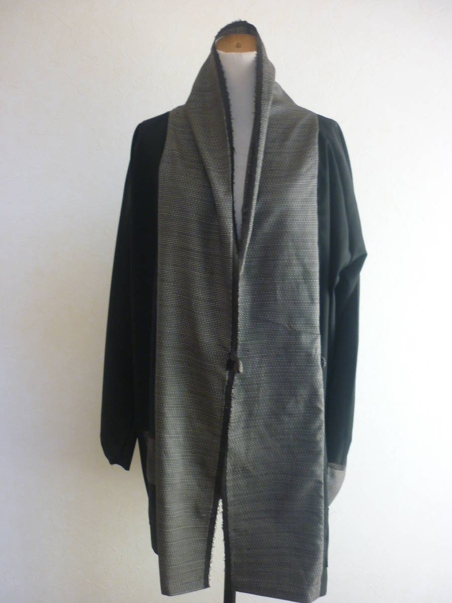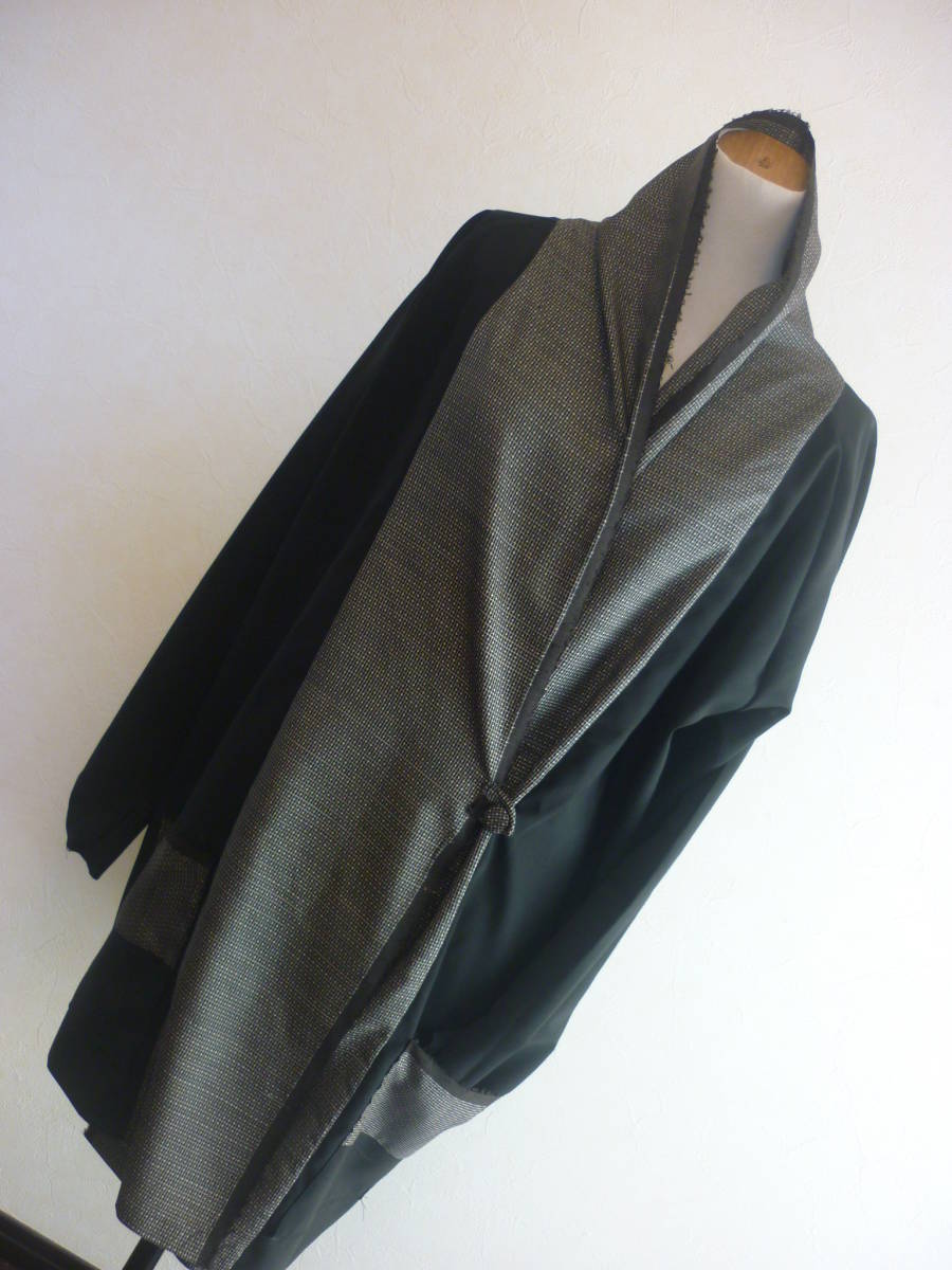 即決LL.2L.3L.4L大きいサイズの春コート,泥大島紬&黒,花粉ガード加工地使用のスプリングコート,着物リメイク,コート w