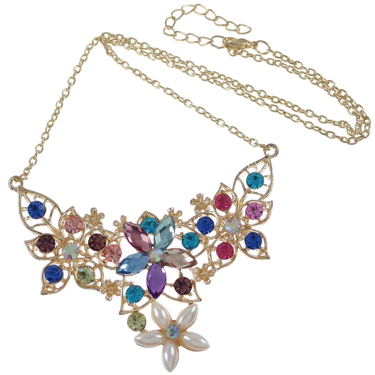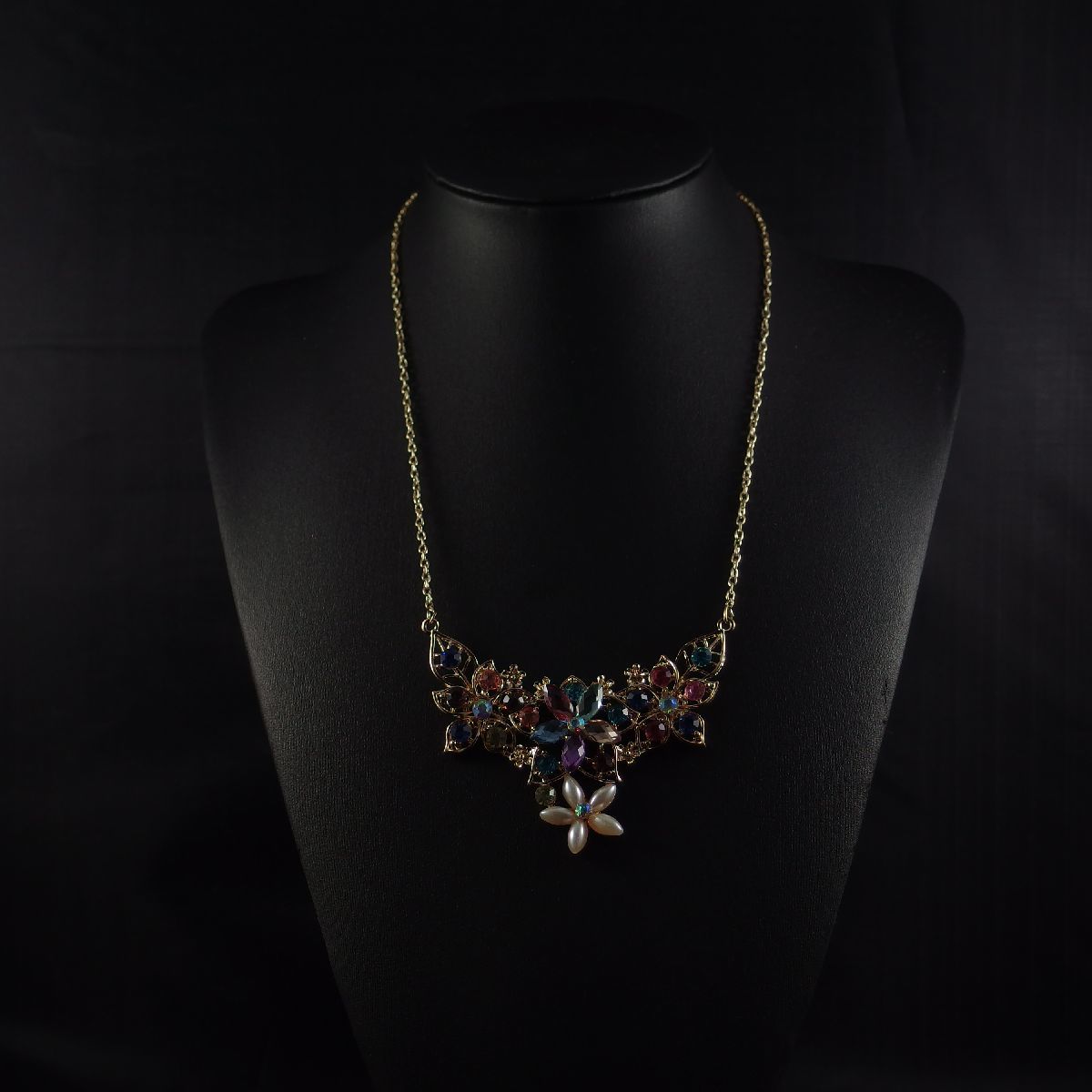 A5247◆ たくさんの花々が飾るトップ * フラワーモチーフ ◆ 新品ネックレス ◆ 長さ46㎝ ◆
