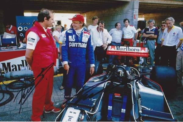 1983年 McLaren MP4-1E Niki Lauda ニキ・ラウダとロン・デニス(Sir Ron Dennis)二名のサイン フォト