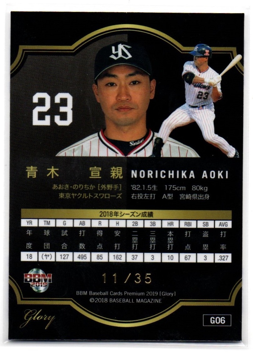 【青木宣親(東京ヤクルトスワローズ)】2019 BBM GLORY パープル箔パラレルカード [11/35]