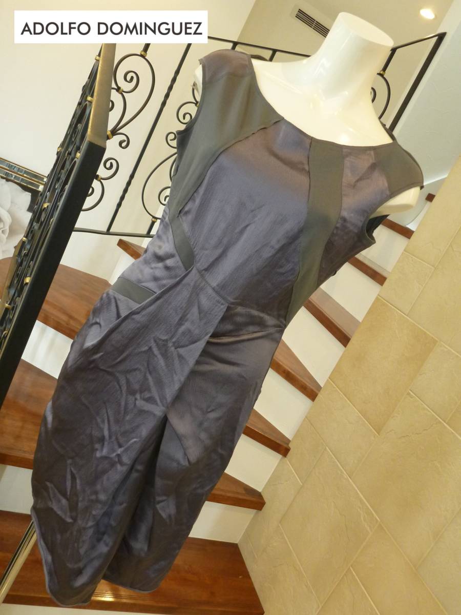 4万 超美品 アドルフォドミンゲス(ADOLFO DOMINGUEZ)★ グレー 美ライン ワンピース 38 M相当
