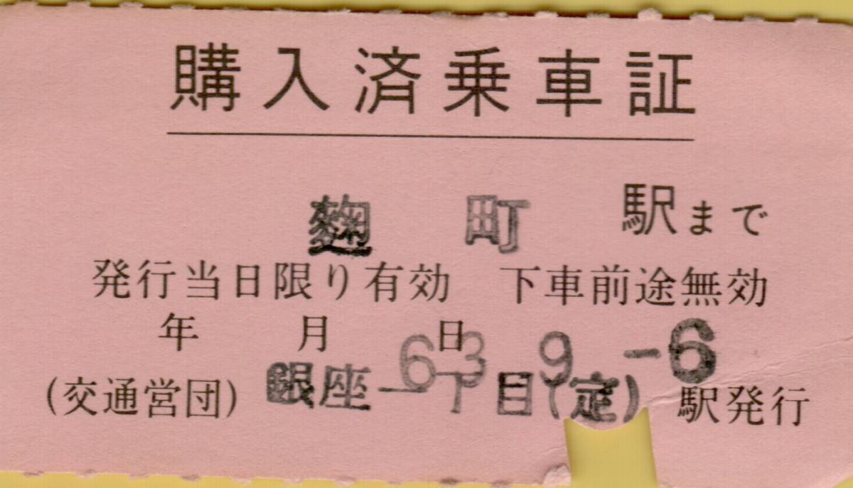 ◎   【 交通営団 】   購入済乗車票     麹町駅まで     軟券